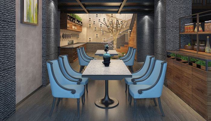 在餐廳設(shè)計中,設(shè)計師調(diào)用光、影以及配景、植物等表現(xiàn)手段來增強空間主題對人所產(chǎn)生的溫馨與浪漫。