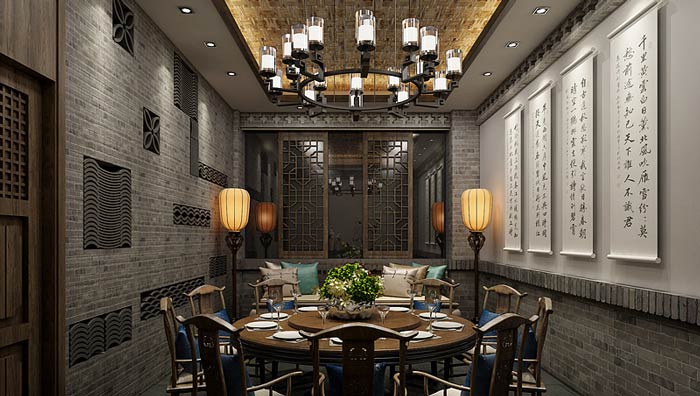 中餐廳包廂設(shè)計:包廂由餐區(qū)、休息區(qū)構(gòu)成,餐區(qū)滿足空間原本的屬性——聚餐,休息區(qū)是為交談、聊天所設(shè)定的,當(dāng)需要交流的時候,休息區(qū)就派上了用場,如此是不希望打擾到其他人。