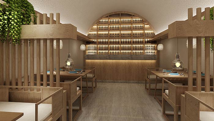 窯洞主題餐廳酒架設(shè)計(jì):定制的酒架與窯洞完美契合在一起,這讓窯洞有了新的元素,原始的質(zhì)樸、味覺(jué)的享受、酒的甘甜,一切顯得讓人陶醉。