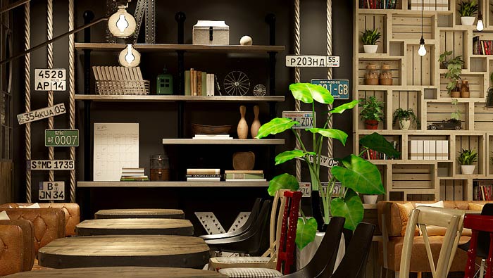 韓式主題餐廳裝飾墻設(shè)計(jì):裝飾墻上擺放著各式各樣的裝飾品,其一是為了裝飾空間,其二是為了讓空間更加美麗,綠色的綠植擺放在裝飾墻上,讓空間變的美麗、自然。