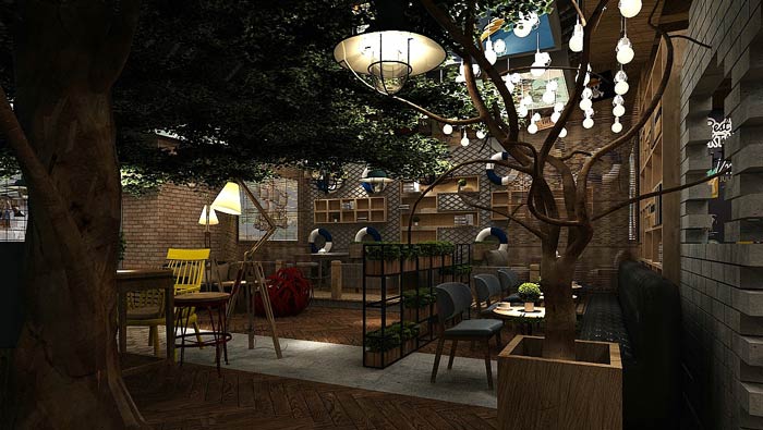 主題餐廳休閑區(qū)設(shè)計:在休閑的環(huán)境中吃飯,會增加人的食欲,此處位于空間的中心區(qū)域,整個空間的景色一覽無遺,這里的風(fēng)景宜人,讓環(huán)境融入美食之中。