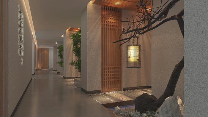 過道的設(shè)計(jì):此處是前臺大廳連接室內(nèi)的過渡區(qū)域,故此此處的重要性不言而喻,設(shè)計(jì)師在其中融合了各種各樣的元素,但同時(shí)各種元素都一掃而過,沒有強(qiáng)調(diào)某一種風(fēng)格,而是希望打造一個(gè)集合的空間,因?yàn)槊恳粋€(gè)人對事物的認(rèn)識均不相同,設(shè)計(jì)師希望在這里將禪意、簡約、古韻和時(shí)尚融合于一體。