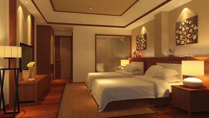 雙人間的設(shè)計:在雙人間的設(shè)計上面,設(shè)計師認為最重要的就是完善各自之間的距離,因為兩個人與一個人總歸是有很大的不同,在這里床的位置十分重要,因為既不能突出那個,也不能忽略哪一個,所以空間的平衡非常重要,這就要求設(shè)計師在設(shè)計中,需要對格局進行不斷的調(diào)整與嘗試,目的就是希望達到一種動態(tài)的平衡。