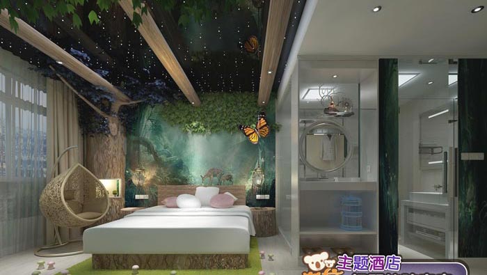 綠野仙蹤客房的設(shè)計(jì):綠野仙蹤講述了美國堪薩斯州小姑娘,多蘿西被龍卷風(fēng)帶入魔幻世界,在“奧茲國”經(jīng)歷了一系列冒險(xiǎn)后最終安然回家的故事,設(shè)計(jì)師希望給客戶一場特殊的、奇妙的探險(xiǎn)旅行,讓客戶在旅行中增長見識(shí),培養(yǎng)內(nèi)涵,得到了智慧與勇氣。