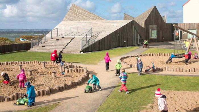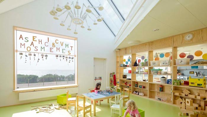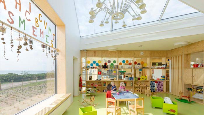 教室采光的設(shè)計(jì):室內(nèi)與室外海洋景觀緊密聯(lián)系,全年都可以提供理想的日光照明條件,讓孩子們?cè)谶@里無憂無慮的成長(zhǎng),溫暖的陽光見證了孩子的成長(zhǎng),也照開了孩子的心,讓孩子們從小學(xué)會(huì)積極向上的生活,為孩子的茁壯成長(zhǎng)打下堅(jiān)實(shí)的基礎(chǔ)。