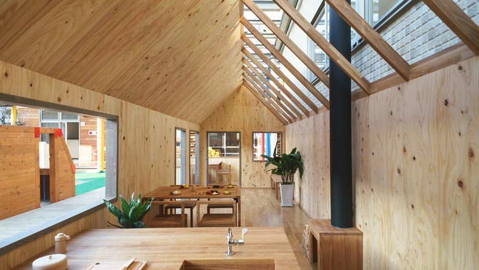 內(nèi)部空間的設(shè)計:從內(nèi)向外看可以看出整個空間條理十分清晰,目的就是不希望阻礙孩子的創(chuàng)造力和好奇心,在這里教會孩子不斷理清事物,有鮮花裝飾的桌子,用餐時讓孩子自己安排自己的菜肴,在飯后小孩子自己去洗碗,目的就是為了鍛煉他們動手的能力,讓孩子們在不斷學(xué)習(xí)中成長起來。